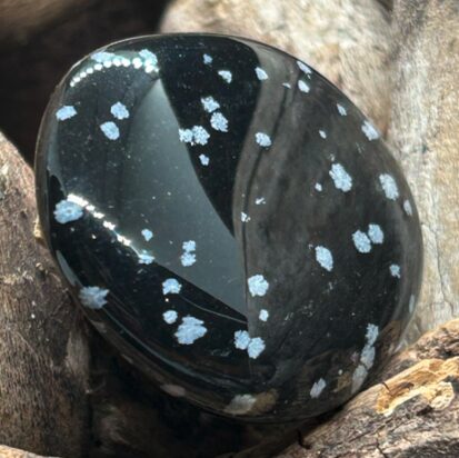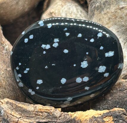l’obsidienne neige est une pierre volcanique du mexique avec des inclusions blanches évoquant des flocons. elle agit comme un véritable bouclier énergétique et aide à clarifier l’aura.