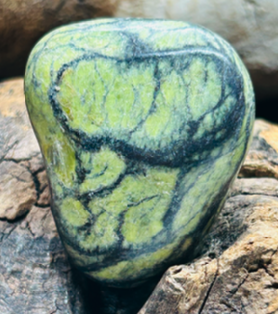 serpentine verte du zimbabwe, pierre apaisante et protectrice. calme migraines, régule système digestif, réduit crampes et protège des énergies négatives.