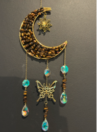 - matériaux : œil de tigre naturel, métal cuivré, papillon & soleil métalliques, perle attrape-soleil